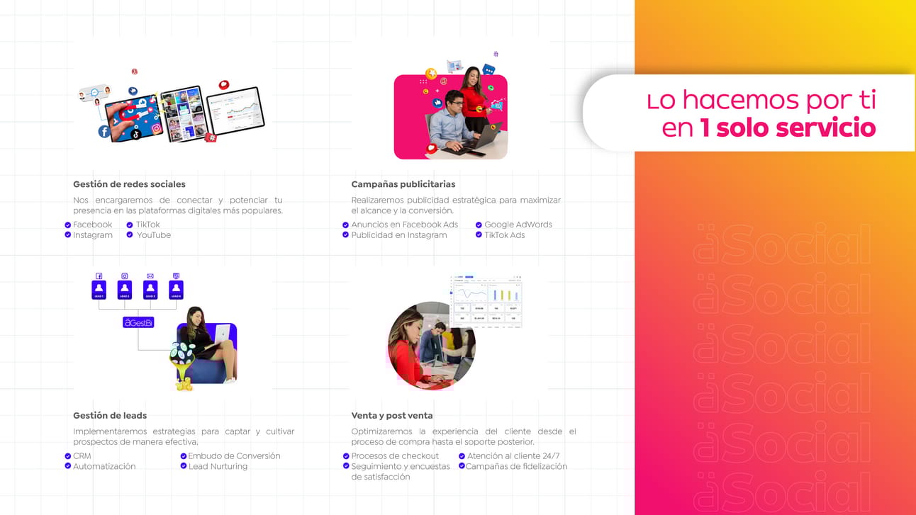 Al combinar esfuerzos de marketing y ventas, äSocial no solo ayuda a incrementar las ventas a corto plazo, sino que también trabaja para posicionar tu marca de manera sólida y sostenible en el mercado.