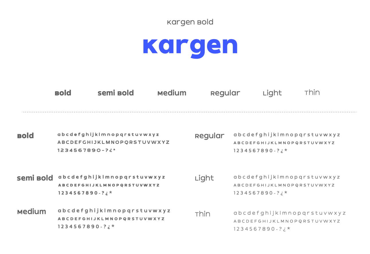 Kargen y Montserrat: Hemos seleccionado estas fuentes por su legibilidad y versatilidad, asegurando que nuestra comunicación sea clara y accesible en todas las plataformas. Kargen, usada primariamente en encabezados, proyecta una imagen moderna y audaz, mientras que Montserrat proporciona un equilibrio perfecto en textos de soporte, reflejando nuestra accesibilidad y compromiso con la claridad.