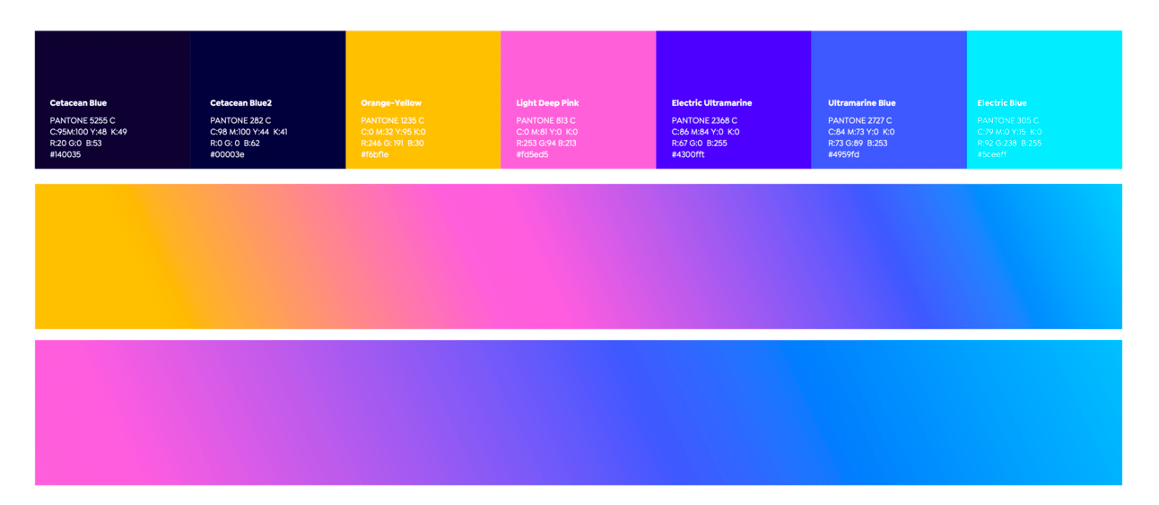 Tonos Oscuros (Electric Ultramarine y Ultramarine Blue): Incorporamos estos colores para ofrecer un contraste sofisticado y elegante que complementa los tonos más brillantes. Estos colores profundos subrayan nuestra autoridad y profesionalismo en el ámbito empresarial.